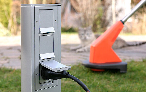 Häcksler, Rasenmäher oder Heckenschere – im Garten kommen oft viele elektrische Geräte zum Einsatz, für die Strom benötigt wird. Eine gute Alternative zu lästigem Verlängerungskabelsalat oder Kabeltrommeln im Garten sind Energiesäulen. Sie bieten genügend Platz, um mehrere Elektrogeräte anzuschließen und lassen sich auf fast jedem Untergrund im Außenbereich stabil montieren. Jetzt, im Herbst, wo die meisten Pflanzen abgeblüht sind und die verschiedenen Gartenbereiche ohnehin für das Frühjahr vorbereitet werden, ist ein guter Zeitpunkt um über eine Installation nachzudenken. Die Energiesäulen werden über Kabel, die im Erdreich, idealerweise in Sand oder zumindest in steinfreiem Boden, verlegt sind, direkt an die elektrische 230-Volt-Installation des Wohnhauses angeschlossen.